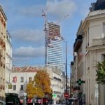 La tour Triangle, un an plus tard (voir l’Echo Val de Seine N° 113 de décembre 2024). Au moment de la photo, 35 des futurs 44 étages étaient déjà construits. Elle n’a donc pas encore fini sa croissance et ses 180 m (30 m de moins que la Tour Montparnasse). La livraison finale serait prévue…